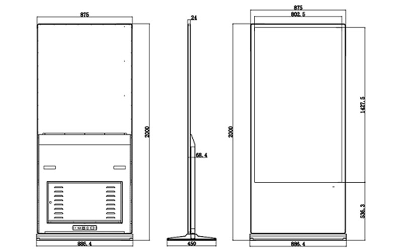外殼配置 | 外殼材質(zhì) | 表面3MM鋼化玻璃,邊框鋁合金型材,后殼1.5MM鈑金。 |