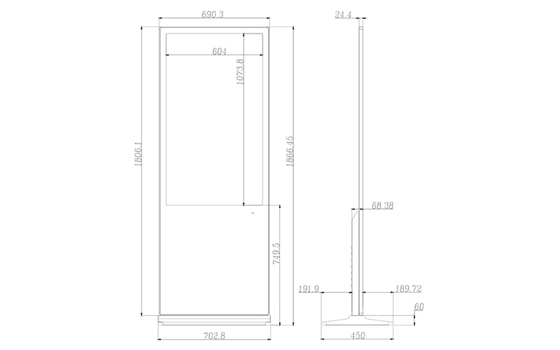 外觀尺寸 | 1866.45x702.8x24.4mm | 底座紙箱尺寸 機身紙箱尺寸 | ||