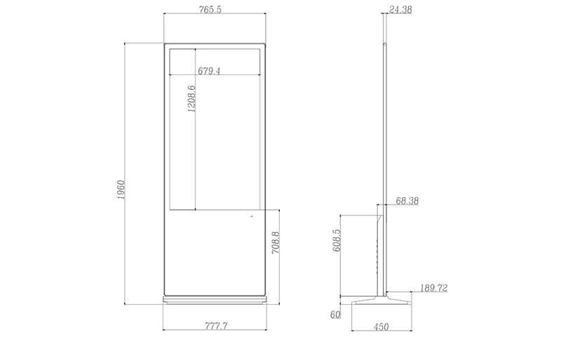 外觀尺寸 | 1960x777.7x24.38mm | 底座紙箱尺寸 機身紙箱尺寸 | ||