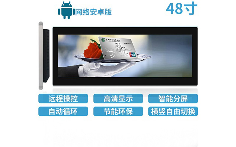 CTVS中視智能商顯科技有限公司是一家專注于中高端LCD液晶條形屏研制與生產(chǎn)銷售的,此款產(chǎn)品的顯示尺寸為48寸,搭載安卓操控系統(tǒng),能夠?qū)崿F(xiàn)播放內(nèi)容的遠(yuǎn)程控制跟數(shù)據(jù)傳輸,廠家直銷,品質(zhì)保證。