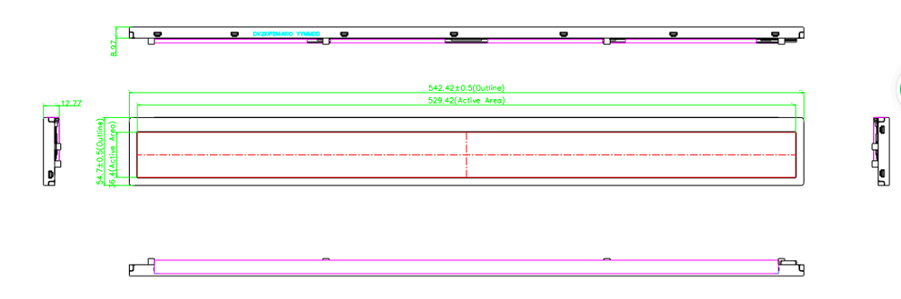 顯示區域 | 529.416 × 36.39735 mm | 可視角度 | 89/89/89/89(cr≥10)(上下左右) | |