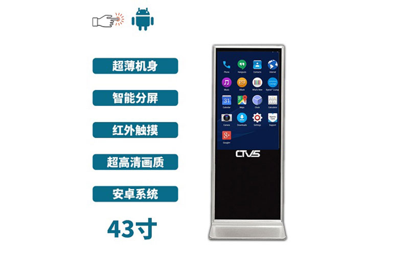 深圳中視智能商顯科技專注于高品質立式觸摸一體機的研制與生產銷售,此款產品搭載紅外觸控屏,顯示尺寸為43寸,采用安卓操控系統,顯示細膩,畫質運行穩定,并且支持多點觸控技術,產品品質與價格優勢顯著,支持定制化生產服務。